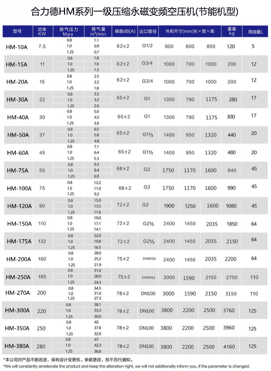 合力德HM系列一级压缩永磁变频空压机(节能机型)